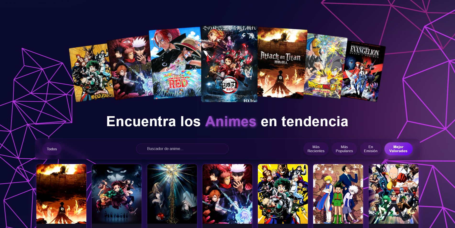 Aplicación dinámica construida con Vue.js que consume una API externa para buscar, filtrar y mostrar fichas detalladas de animes.