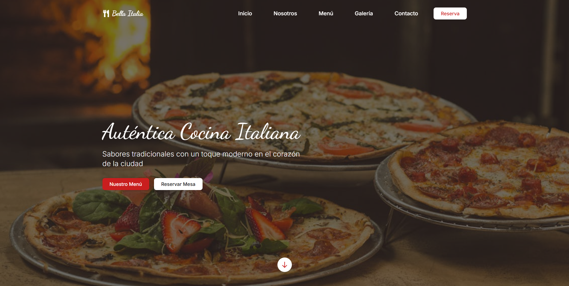 Landing page corporativa para restaurante italiano, enfocada en transmitir la identidad de marca y mostrar la carta de forma apetecible.