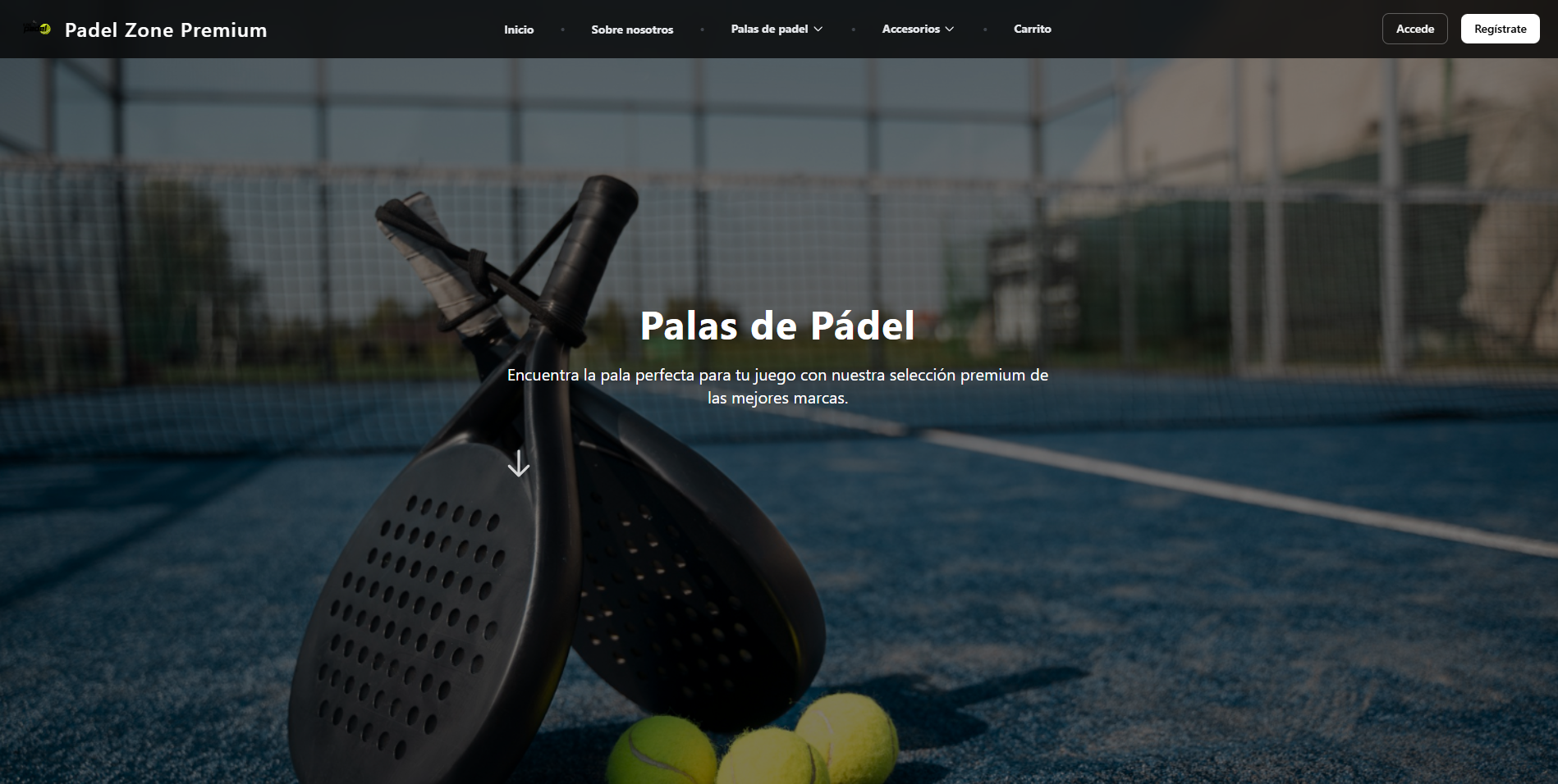 Tienda online completa para equipamiento de pádel, optimizada para la conversión con catálogo de productos y carrito de compras.