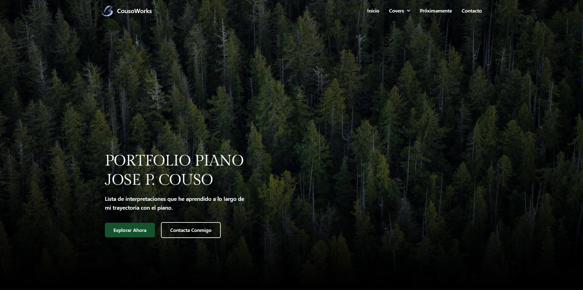Espacio personal interactivo que recopila covers de piano, diseñado con un enfoque visual elegante y reproductor de audio integrado.